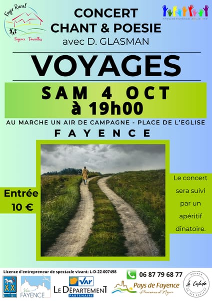 - 4/10/2025 : Voyages : Concert, chant, poésie … avec Dominique Glasman