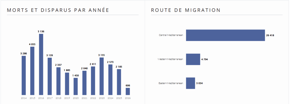 « Au cours des premières semaines de 2026, plusieurs naufrages ont déjà été signalés et l’OIM (Organisation internationale des migrations) craint plusieurs centaines de morts et disparus en mer. Selon l’organisation, ces embarcations seraient parties de Libye et de Tunisie.