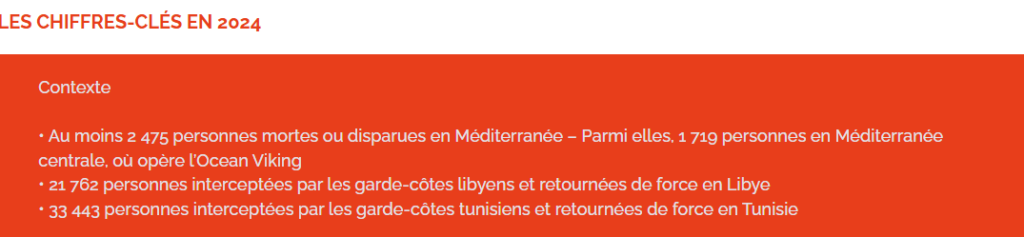 Sources : SOS Méditerranée : Publication du rapport d’activité 2024 – « Chaque vie compte »