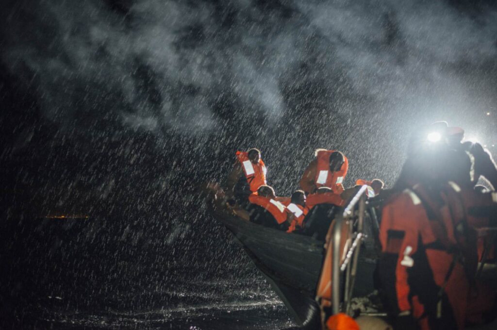Prendre la mer en hiver, sur une embarcation de fortune, c’est s’exposer à un combat contre les éléments. Les vagues sont plus hautes et plus menacantes, chacune d’elles peut être fatale. La nuit tombe très tôt et repérer les embarcations en détresse devient un défi presque insurmontable. Le soir, nos équipes scrutent l’horizon à la jumelle, cherchant un éclair fugace, la lumière vacillante d’un téléphone encore chargé.