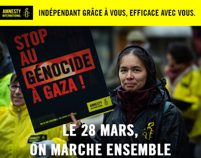 18/3/2026 : Amnesty International : 28 mars : mobilisons-nous pour Gaza